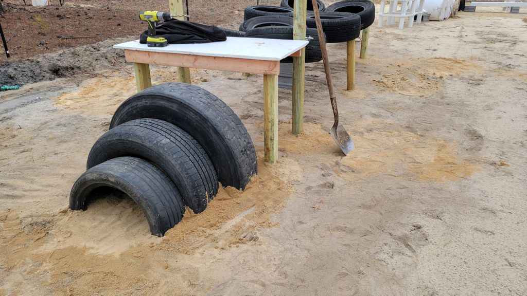 The hanging tire obstacle is now added to the course! You can see my dog learning it here:
